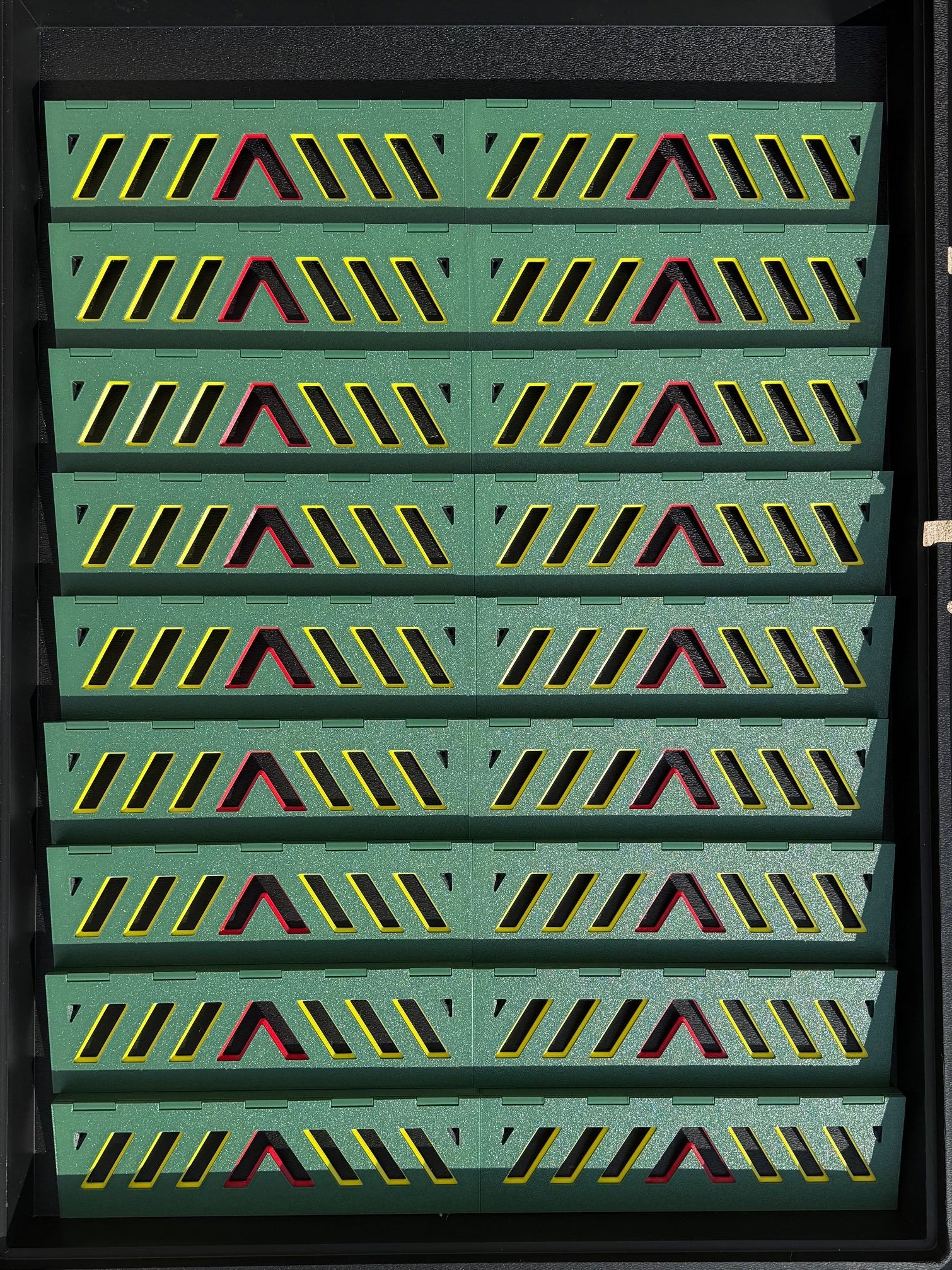 Arsenal Display works in many display cases that have at least 2.75" in depth. This is perfect for Zioncases, which is the standard rental case of Collect-a-con and other major card shows. Each set contains modular pieces that are designed to increase the number of rows in each of your cases, thereby increasing the capacity in your cases by at least 35%.